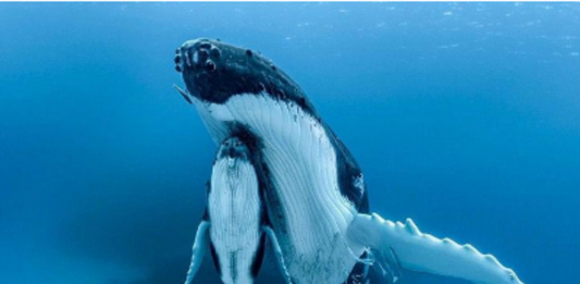 O fotógrafo capturou a mãe baleia nadando com seu filhote sob...